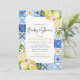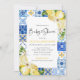 Watercolor Blue Tiles Lemons Italian Baby Shower Invitation