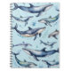 Watercolor Blue Whales and dolphins , sea animal Notebook