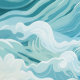Watercolor Blue White Abstract Sea Waves Coastal Wallpaper