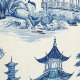Watercolor Blue White Japanese Pagoda Landscape Wallpaper