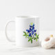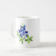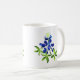 The popular Texas Bluebonnet graces the surface of this mug, painted in watercolor shades of blue and green. Featuring a single flower for contemporary styling.