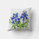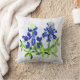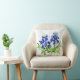 Throw pillow featuring my watercolor Bluebonnets painting in shades of blue, purple and green on a white background.