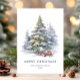 Watercolor Bohemian Neutral Blue Christmas Tree Holiday Card