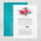 Boho chic pink and turquoise blue watercolor floral bouquets wedding program cards designed to be quickly and easily customisable to your event specifics.