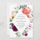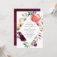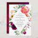 Boho floral wedding invitation featuring peony and anemone flowers, greenery and feathers in accents of burgundy plum and blush pink customisable to your specifics.