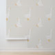 Watercolor Boho Goose White Beige Nursery Wallpaper