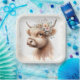 Watercolor Boho Highland Cow With Bridal Flowers Paper Plate
