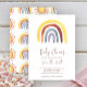 These adorable baby shower invitations feature trendy boho style and trendy handwritten script. Neutral cute painted watercolor rainbow.