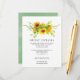 Trendy hand painted watercolor sunflower wedding guest details cards invitation with sage green watercolor wash background.