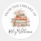 Watercolor Book Pink Rose Floral Bookplate Sticker