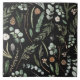 Watercolor botanical floral black, green modern Tile