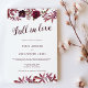 Classic elegant calligraphy with watercolor burgundy and pink botanical flowers Fall in Love Wedding invitations are a perfect choice for couples looking for a romantic and simple touch to their big day. This hand-painted watercolor flower frame surrounds your wedding details. Give your guests a wonderful first glimpse of your wedding to come this invitation will be a fantastic addition to your wedding events.