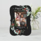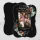 Watercolor Botanical Happy Holiday Photo Black Card