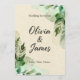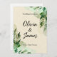 A soft and elegant watercolor invitation decorated with delicate botanical leaves.