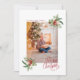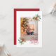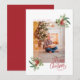 This beautiful holiday card features elegant watercolor red flowers with greenery on a white background with Merry Christmas in red text. The back of the card is red to match the front.