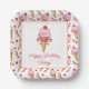 Watercolor Bow Pink Ice Cream Cone Party Paper Plate