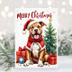 A heartwarming Boxer Dog Christmas card featuring an adorable Boxer Dog wearing a Santa hat surrounded by Christmas decor. Personalise with your greeting text.