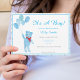 Capture the essence of a "It's A Boy" celebration with this enchanting watercolor depiction of a blue Teddy Bear Baby soaring through the air, accompanied by a cluster of blue balloons. This exclusive artwork, painted by the talented Daphsam, is complemented by a background adorned with hand-painted patterns of baby boy essentials. The soft blues evoke a delightful sense of anticipation as the sweet baby makes his way into the world. Personalise this invitation effortlessly by clicking the blue "Personalise" button, guaranteeing a stress-free experience.