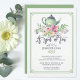 Simple elegance bridal Shower invitation featuring a beautiful watercolor green tea pot with a gorgeous floral bouquet set on a fresh white background with a beautiful hand lettered font. Flip our wedding shower invite over to view a coordinating back for an extra special touch.