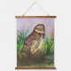 Watercolor Brown Owl with Green Leaves Background Hanging Tapestry
