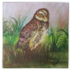Watercolor Brown Owl with Green Leaves Background Tile