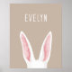 Watercolor Bunny Ears On Beige With Child's Name Poster