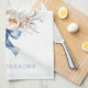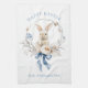 Watercolor Bunny Flowers Blue Bow Spring Tea Towel