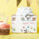 Easter wrapping featuring a watercolor Easter bunny juggling with colourful Easter eggs. You can change the text to put a name.