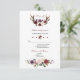 Watercolor Burgundy Blush Floral Antlers Wedding RSVP Card