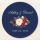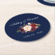 Watercolor Burgundy Floral Blue Wedding Round Paper Coaster