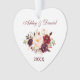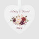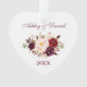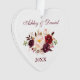 Watercolor Burgundy Floral Couple Names Heart Ornament