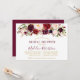 Modern Elegant Watercolor Burgundy Floral Bridal Shower Invitation Card includes burgundy, red, pink roses and botanical greenery leaves. Trendy Calligraphy Script. Gold Text. Burgundy Back.