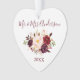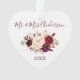 Modern Elegant Watercolor Burgundy Marsala Floral Wedding Mr. and Mrs. Heart Ornament