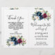 Watercolor Burgundy Navy Flowers Wedding Program