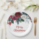 Watercolor Burgundy Winter Flowers Christmas Paper Plate