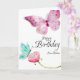 This elegant birthday card features a delicate watercolor design with soft pastel butterflies and a blooming flower. Personalise it with a name to make it truly special for your loved one. Perfect for those who appreciate nature, art, and a touch of beauty. The minimalistic yet vibrant design exudes warmth and joy, making it a wonderful way to say "Happy Birthday."