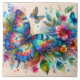 Watercolor Butterfly Floral Flowers Blue Pink Tile