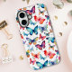 A striking iPhone case featuring a colourful watercolor pattern of butterflies set against a white background.