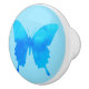 Knob patterned with a single, large, watercolor butterfly in shades of cobalt, turquoise and sky blue on a pastel sky blue background