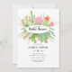 Succulent botanical illustration bridal shower invitation featuring a wide variety of cactus plants.
