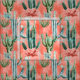 Watercolor Cactus on Coral Fabric