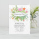 Succulent botanic illustration long distance bridal or baby shower by mail invitation with elegant handwriting typography. Featured are a wide variety of cactus plants including giant saguaro, ball, cowboy, red foxtail, euphorbia ingens, bunny ear (polka dot), hairbrush, prickly pear and crafted cactus.