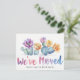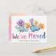 Announce your exciting new chapter with our charming watercolor cactus 'We've Moved' announcement postcard. This design features a lovely array of pastel-coloured cacti and flowers, adding a touch of southwestern flair to your big news. The soft watercolor effect creates a gentle and inviting aesthetic, perfect for sharing your new address with loved ones. Personalise it with your names and new home details, making it a memorable keepsake for friends and family to cherish. Share the joy of your move and let them know you're excited for them to visit your new place!