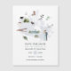 North american map themed canada location wedding save the date card featuring famous canadian icons. All elements are entirely customisable.