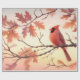 Watercolor Cardinal and Autumn Leaves Decoupage Wrapping Paper