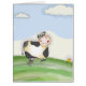 Illustrated watercolor design of a cute cartoon cow standing in a grassy farm field