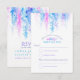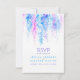 Loose cascading vine flowers modern botanica watercolor painting art wedding RSVP response cards. Beautiful floral art design ideal in pretty shades of purple, aqua blue and pink on white. Other matching wedding items available. © Original watercolor art and design by Sarah Trett www.sarahtrett.com for www.mylittleedenweddings.com