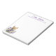 Sweet cat lover's notepad done in white. Cute watercolor artwork of a orange tabby kitten, with bow tie, is sitting in a bunch of wild flowers, on the bottom. Personalise the text to read what you want. Pretty notepad for yourself or as a nice little gift idea.