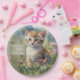 Bring a touch of sweetness to the party with this adorable watercolor kitten paper plate. The soft, hand-painted orange tabby sits in a meadow of delicate wildflowers, creating a warm, cheerful, and nature-inspired look that works beautifully for birthdays of any age.