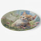 Watercolor Cat Meadow Flowers 80th Birthday Paper Plate